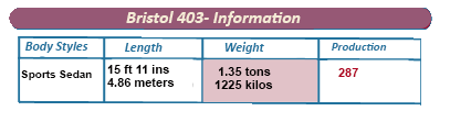 With that kind of power under its hood, the Bristol 403 was recorded reaching a speed of 60 miles per hour (97 kph) within a highly creditable 13.4 seconds.