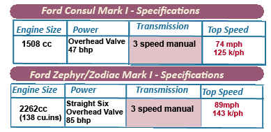 ll this was to change, and dramatically, with the introduction in 1951 of the Mark1 series of medium-sized family saloons starting with the Ford Consul and Zephyr, with the top of the range Zodiac introduced two years later