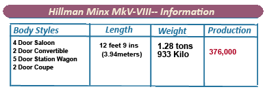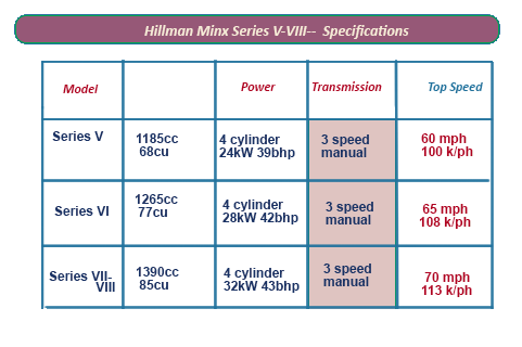 he Hillman Minx Series V was powered by a 1592cc, capable of generating 53 bhp. matched up to manual transmission.