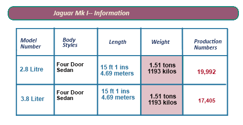 The Jaguar Mark 1 Series was discontinued in 1959, to be replaced by the Mark 2. During the four years that it was in production, Jaguar sold around 38,000 of these cars, among them, interestingly enough, slightly more 2.4 engined versions than the 3.4 versions.