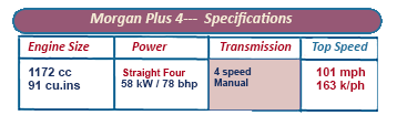 First market impressions were that the Plus 4 an attractive and practical sports car, although when Morgan lengthened the wheelbase of the 4/4 chassis to 96 inches and added two inches to the track while stiffening up the frame all round, and changing suspension settings from rock hard, the car moved up a league or two