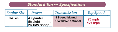 Though the Ten had a fully trimmed interior, it was still a simple car, with no pretensions to high performance or sporty handling. Exterior identification was by a Vanguard-like front grille.