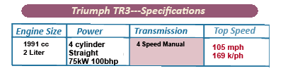 Proving that outward appearances can be deceptive, the TR 3 was much more powerful, developing 3.5kW (5bhp) more than its previous incarnation, thanks to its having larger SU carburettors. There was also a Le Mans-type head available, which developed 75kW (100bhp).