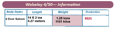 ith the middle-class British public looking to replace the mostly pre-war vehicles, even an uninspiring car such as the 4/50 was guaranteed a market, and it was evident to all concerned that the vehicle was developed solely as a stopgap for Wolseley until more appealing models could be developed.