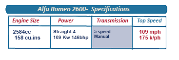 The 2600 was earmarked to be the successor to the Alfa Romeo 2000; the 2600 carried some considerable historical significance as the last model to have been fitted with an inline six-cylinder engine with twin overhead camshafts, the traditional Alfa Romeo engine configuration since the Nineteen Twenties