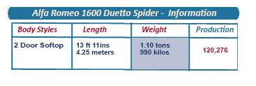 Early in 1967, the Duetto was replaced by the beefed-up 1750 Veloce version, manufactured with two twin carburettors for the European market and fuel injection for the US.