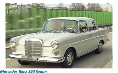 Still bearing a strong resemblance to its predecessor the 180, although with its longer bonnet giving the car a more angular appearance,the 190 sedan’s body was very obviously derived from the W111 series although fitted with round headlights, inviting a strong comparison to the W120/W121 models better known as the” Pontons.”