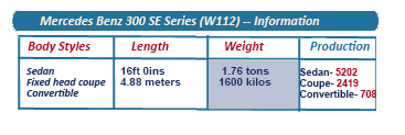 The 300SE was an undoubted eye-catcher, and Mercedes emphasised its stance by fitting large diameter wheels offset by whitewall tires.