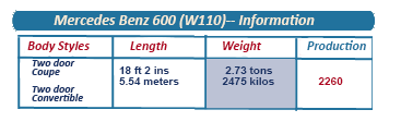 edes-Benz 600 has never lost its rank among the top classic and luxurious vehicles of the Sixties.