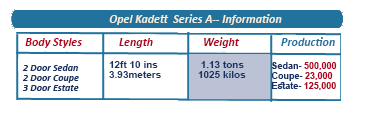 In addition, the Kadett provided as much more in terms of passenger comfort, leg and headroom, improved visibility for the driver and passengers and infinitely more luggage capacity.