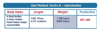 According to Opel press releases, the Series A Rekord was designed and developed at the General Motors Technical Center in Warren, Michigan. ![]()