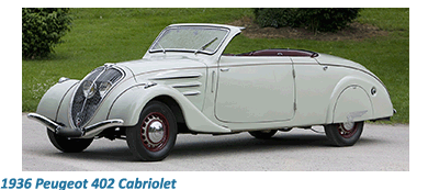 The three models that the company produced to meet the market demands of the Nineteen Thirties were the Peugeot 202, Peugeot 302 and the Peugeot 402. As far as eye appeal was concerned, the undisputed winner was the 402 BL Eclipse décapotable, which Peugeot claimed was the World’s first convertible with a hydraulically retractable roof.