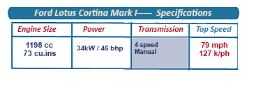 Powered by a Lotus-designed twin-cam engine partnered to a close-ratio geared, alloy transmission, the Lotus Cortina's elaborate real axle casings were also produced in a tough but exceptionally lightweight alloy, comprising of coil springs over dampers, radius arms and an A-frame locating the rear axle. ![]()