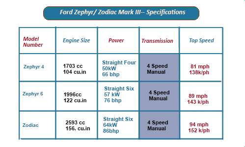 With a heftier price tag, the six-cylinder 2553 cc engined versions of the Mk III, the Zodiac and Zephyr were at once more characterful, more powerful and more appealing than the Zephyr 4 (ex-Consul) derivative.