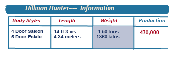 Following in the footsteps of the Minx family which had allowed Hillman to establish a double-edged reputation, for producing solidly built family cars that were comfortable but providing rather dull performance and only average economy.
