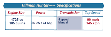 Powered by a 1725cc engine, teamed to a four-speed all-synchromesh gearbox, the Hunter also came with optional overdrive or Borg-Warner automatic transmission, hybrid-bevel rear axle and front disc/rear drum braking installation.