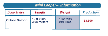 Externally the “Cooper” resembled the new Super models apart from a Cooper badge and eleven horizontal grille bars. Often described as the "pocket rocket," the Mini Cooper soon established a following of its own being the most charismatic and desirable spin-off from the Mini brand.