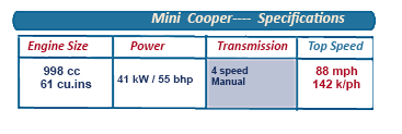 The first higher-performance Mini, the 997cc engine Cooper, followed in the autumn of 1961, with two SU HS2 inclined carburettors power was raised to 55 bhp at 6,000 rpm. An up-rated close-ratio gearbox was fitted, and Lockheed 7-inch diameter front disc brakes overcame an inherent weakness of the standard vehicles. ![]()