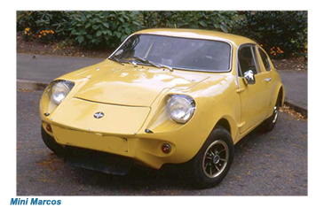 rom 1975 to 1981, the Mini Marcos acted as a blueprint for Harold Dermott, who built the similar-looking Midas Bronze, which was also Mini-based.