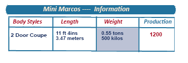 Despite that possible stumbling block, once constructed the Mini Marcos Thad a character all of their own, the Mini-Marcos was effectively a simply-trimmed GRP monocoque, shaped as a two-seater coupe, which buyers could even cut some costs by fitting the body fit in place of any Mini body.