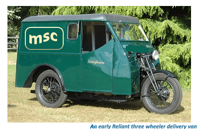 Reliant began as an offshoot of the massive UK bicycle manufacturers, Raleigh, with the company's first product a three-wheeler delivery van, the Ivy Karryall manufactured under license.