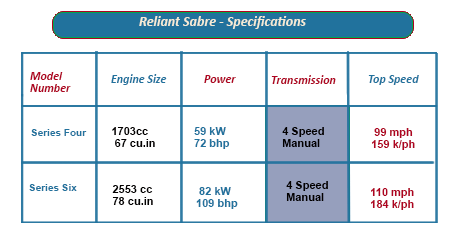 Neither Sabre version turned out to be a great sales success for the company,although the experience gained in their development and production would set a considerable precedent for future sports coupes carrying the Reliant label.