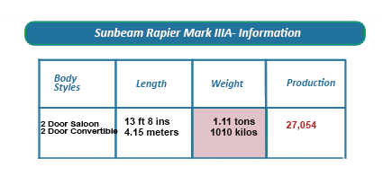 The Rapier IIIA was a very fast car,capable of reaching a maximum speed of around 100 mph,while, according to reviews, handling very well at top speed.