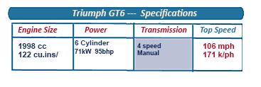 The Triumph GT6 was powered by the same 2-litre (122 cu in) six-cylinder engine used in the Vitesse saloon and convertible, with a more luxurious interior that of the Spitfire while being eminently more powerful.