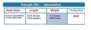 These impressive performance figures were not enough to save the TR5 from an “ early bath, ” and the model was discontinued in 1968, just over a year after the model was first released.