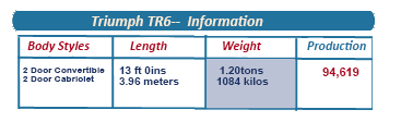 In appearance, the TR6 was not too far removed from its predecessors, the TR4 and TR5 and could even be described as dated compared to some of its competitors released in 1968.