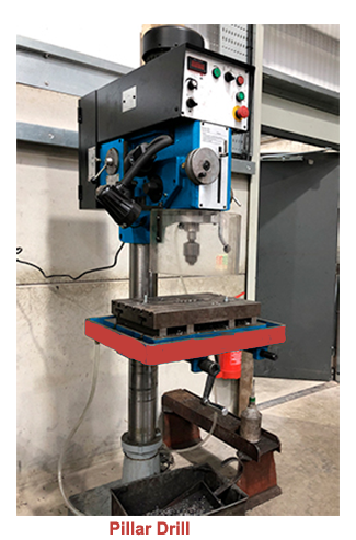 Pillar Drill (Drill Press) • Ensures stable and precise drilling in metal components • Ideal for fabricating brackets, mounts, and creating accurate holes •