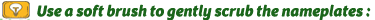 Remove any dirt or grime. Rinse the nameplates thoroughly with clean water and dry them with a soft cloth.