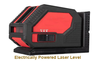 An electrically powered laser level projects one or more straight laser lines using a diode and optical lens system. Self-levelling models automatically compensate for minor surface irregularities, ensuring accurate alignment.