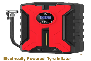 The electric tyre inflator uses a compact electric compressor to deliver compressed air through a hose and chuck, often with an integrated pressure gauge and automatic shut-off.
