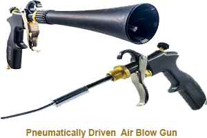 Used to clear debris from panels before sanding or painting, dry components after washing, remove swarf from drilled holes and clean inaccessible cavities, pneumatic blow guns deliver a high-velocity, controllable airflow without generating heat, a factor that makes them safe for use on the most delicate of components including electrical connectors and freshly cleaned metal surfaces. Because of their lightweight construction, air blow guns allow constant use throughout the day with minimal fatigue to its operator.