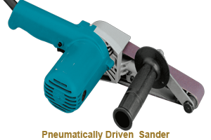 Surface finishing and refinement benefit greatly from the air belt sander / power file. This tool is particularly effective for shaping welds, smoothing panel edges, and dressing tight corners where conventional grinders cannot reach. Pneumatic belt sanders run smoothly at consistent speed, giving restorers fine control over material removal while reducing the risk of gouging or overheating thin steel and aluminium panels.