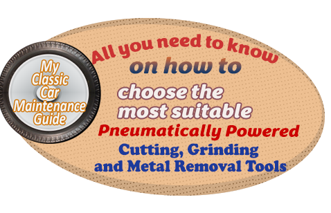 The air cut-off tool is another staple of the restoration workshop. Compact and fast spinning, it is ideal for trimming panels, cutting seized fasteners, removing exhaust sections, or separating spot-welded components.