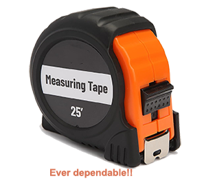 For non-precise, relatively long measurements, a tape measure is always a welcome addition to any tool kit.. Retractable metal designs give acceptable accuracy and are available very cheaply. The tape should have a moveable end tip —which, when pushed up against a surface, will measure the distance from the surface when the tape is hooked over an edge.