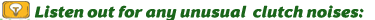 : If any unusual noises are heard when the clutch is engaged, it could indicate a problem. Clutch chatter or squeaking noises could indicate worn components or a problem with the clutch release mechanism.