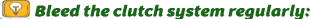 As part of a maintenance programme the clutch system should be bled to remove any air bubbles that may have entered the system. This will help ensure that the clutch is functioning properly.