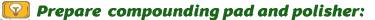 The compounding pad should be firmly and carefully attached to the polisher, carefully following the manufacturer's instructions. A modest amount of cutting compound should be applied directly onto the pad and spread evenly.