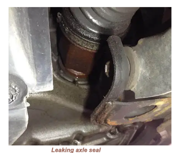 Look for any signs of oil or grease leaks around the axle seals. If any leaks are discovered, they will need to be repaired or replaced as soon as possible.