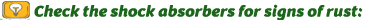 Rust can cause damage to the shocks over time, so it's important to regularly inspect the shocks for signs of rust. If rust is present, have it removed and treated to prevent further corrosion.