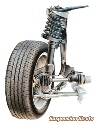 The role of the suspension strut is not only to dampen excess spring fluctuation, and prevent vehicle from spinning, the effects of the upper control arm and ball joint are also eliminated by the diagonal mounted strut, situated between the strut tower and the steering knuckle .