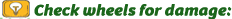 Inspect the wheels for any visible signs of damage, such as bends, cracks or dents. Damaged wheels can cause vibrations, uneven tire wear and can be dangerous.