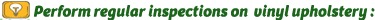 Perform regular inspections on vinyl upholstery to identify any signs of wear, tear, or damage, perform regular inspections on vinyl upholstery allowing for a rapid response to any issues promptly and prevent further damage and deterioration .